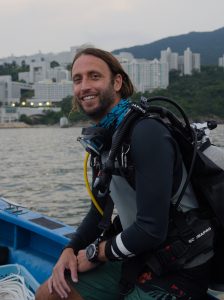 - Gonzalo doing diving field work right in front of HKUST Clear Water Bay campus